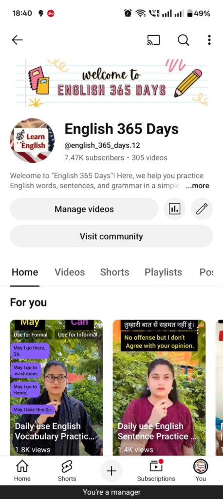 🎥 Daily video lessons, grammar tips & spoken English practice.